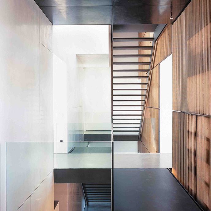 Al tempo della collaborazione Labics si inseriva nel quartiere del Gazometro, a Roma, un’area dal passato industriale, in forte trasformazione residenziale e culturale. In questo contesto denso e vivo, i miei interventi trovano equilibrio tra rigore architettonico e apertura sensoriale: una sequenza di pieni e vuoti, materia e luce, che restituisce allo spazio il suo ritmo naturale. L’architettura dialoga con il contesto senza rincorrerlo: ne assorbe la forza storica e strutturale, ma ne rielabora l’identità attraverso un linguaggio essenziale, attento, contemporaneo. Un respiro nel cuore pulsante della città.