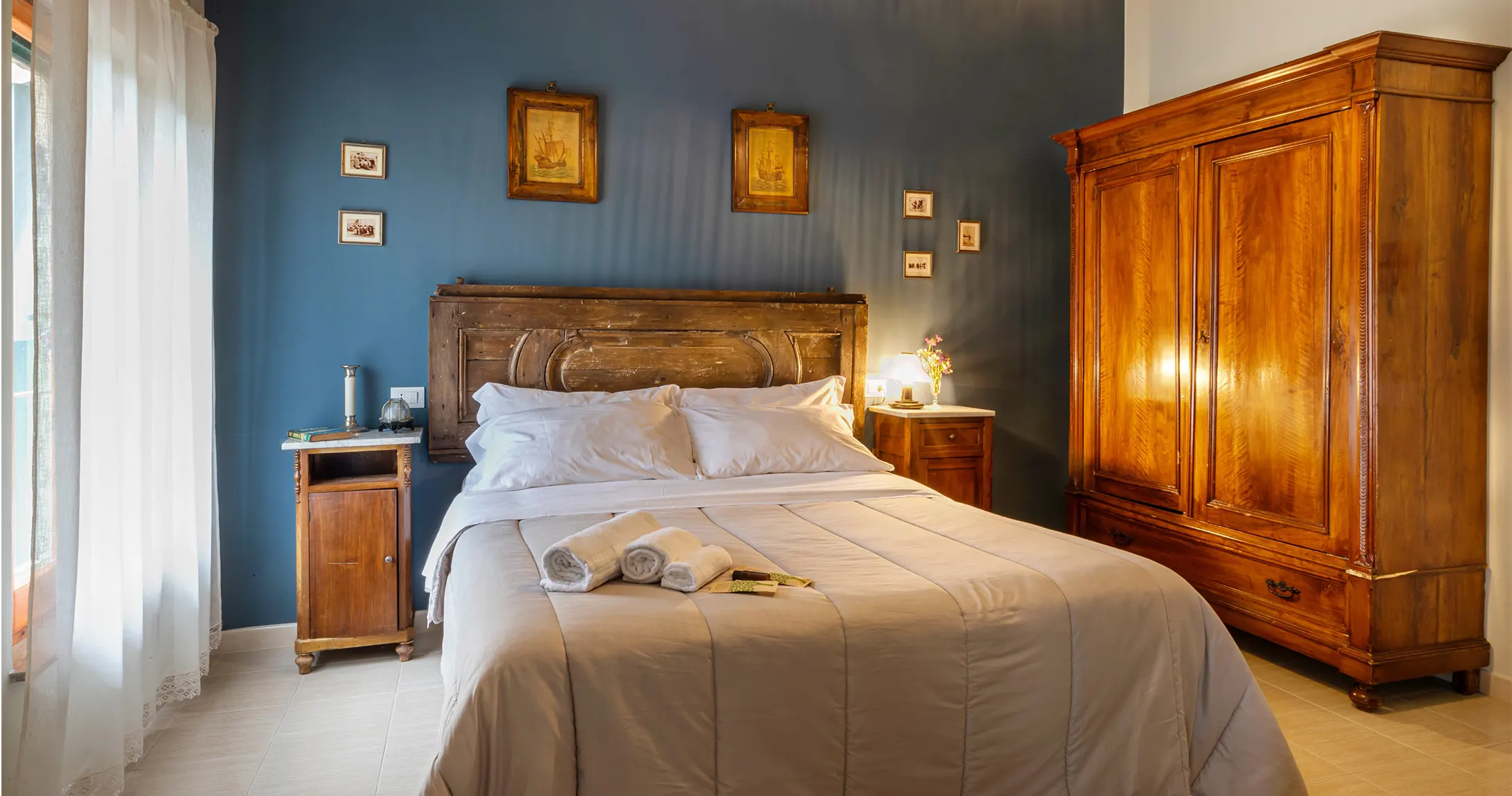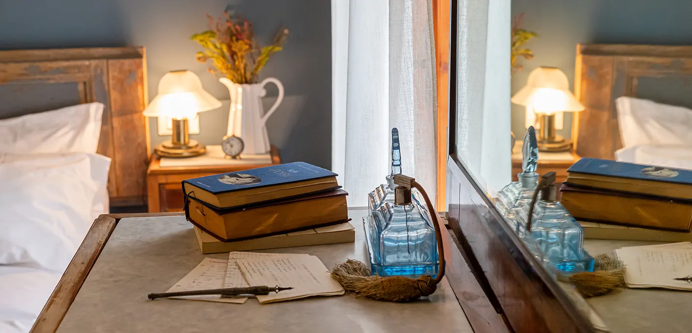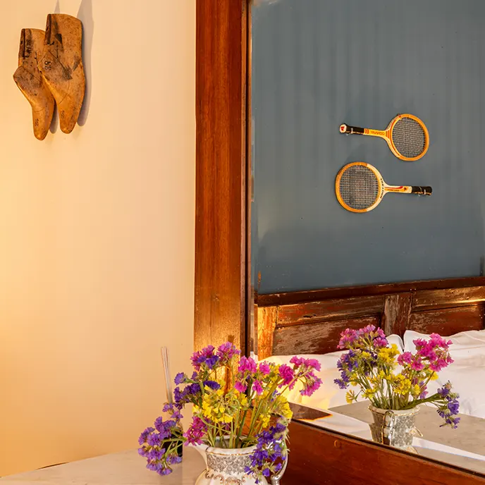 Ogni camera ha preso forma attorno a un tema narrativo (il viaggio, il mare, il tennis, il teatro), trasformandosi in una piccola storia da abitare. Gli arredi sono stati recuperati con pazienza e selezionati uno a uno, frutto di una vera “caccia al tesoro” condivisa con il proprietario, tra mercatini e negozi dell’usato. Nessuna ripetizione o formato standard: ogni ambiente è unico, pensato per far sentire ogni persona esattamente dove vuole essere. A casa.